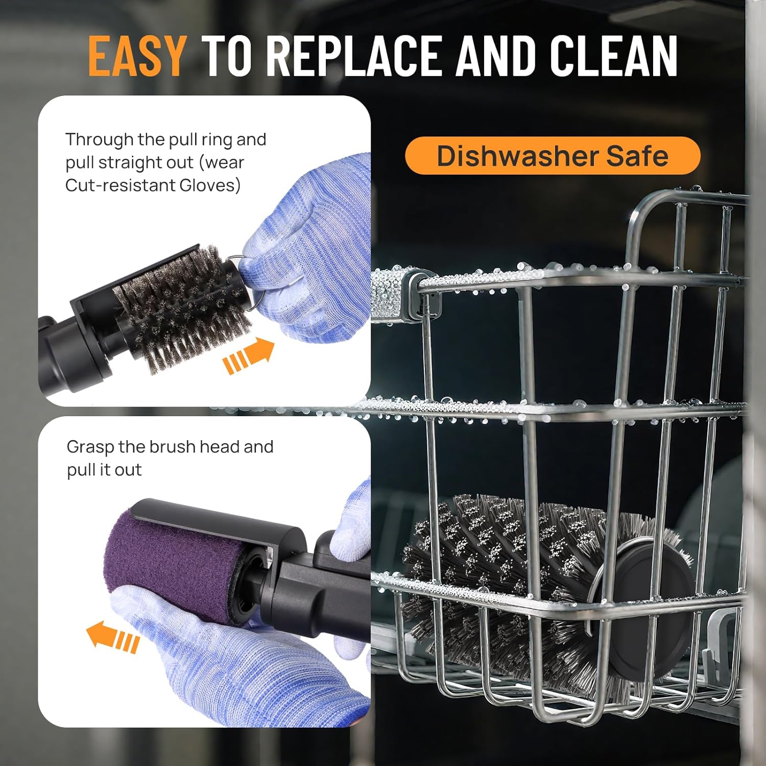 Why risk burns? The innovative 180° rotating brush head lets you clean the entire grill while keeping your hands comfortably away from hot grates and surfaces.Simply rotate the head to clean horizontally, vertically, or at any angle, ensuring easy access to corners and edges without the danger.