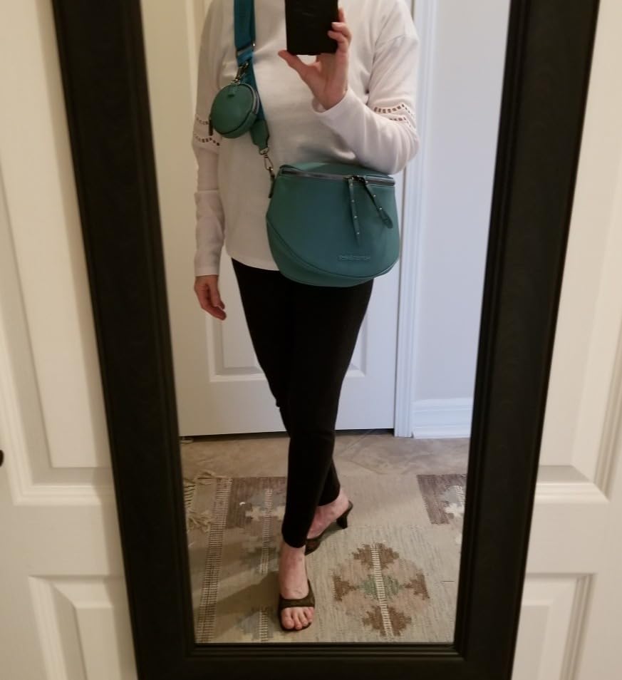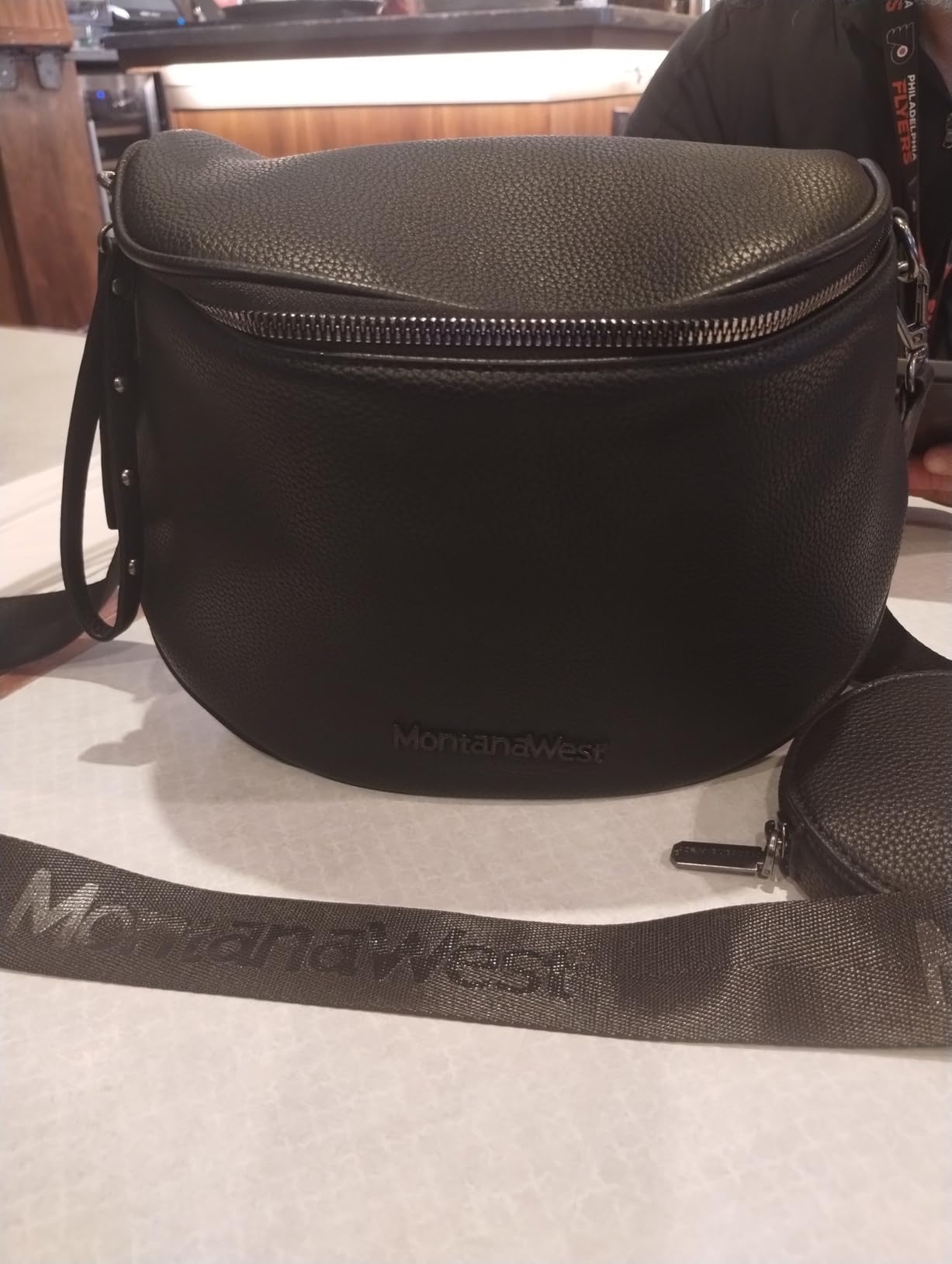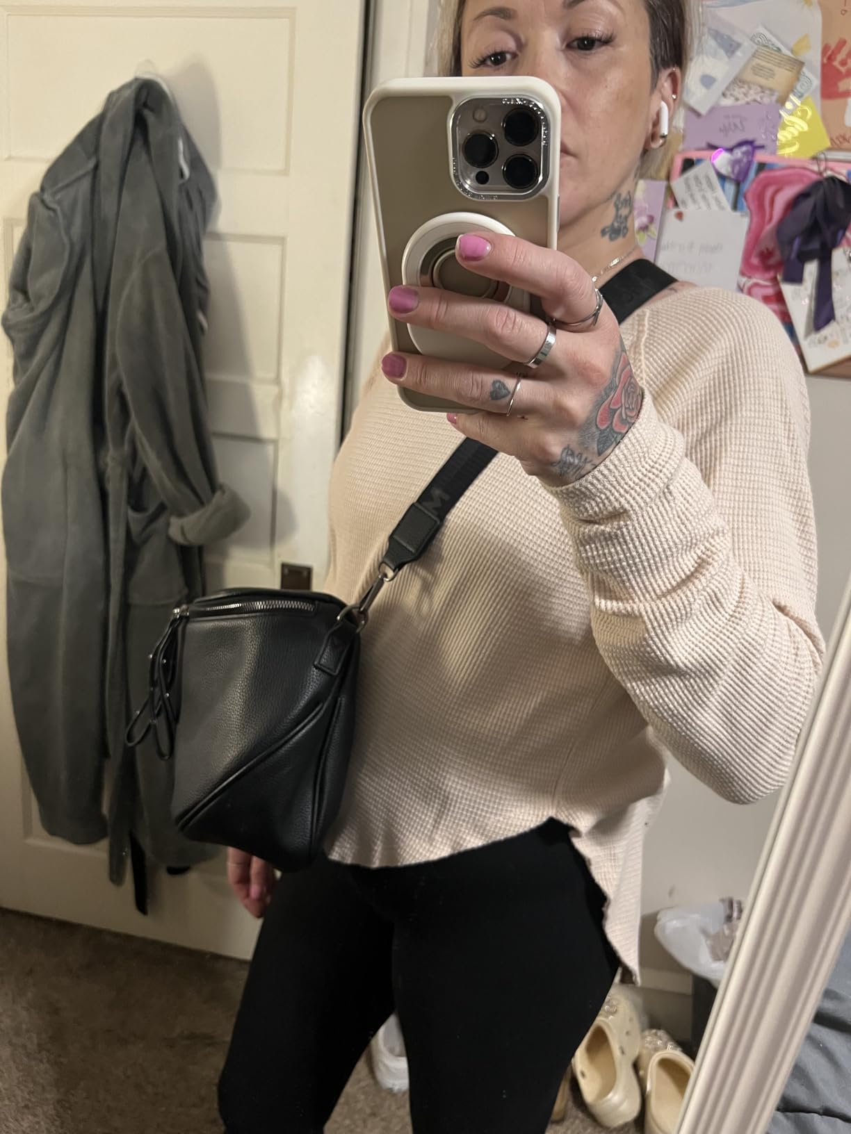 Omg omg omg!!!!! I need this in every color!!! Do you LOVE side bags, fanny packs, sling bags, saddle bags , etc ??! This trumps then allllll! This bag is soft high quality leather , it’s huge on the inside but still looks nice and semi small on your side. The outside pocket fits sunglasses and the inside pocket for your chap stick or whatever. The black is CLASSIC!!! Easy to clean , and hands free functionality in a purse. Don’t run jump on a motorcycle or whatever’s faster and order this !